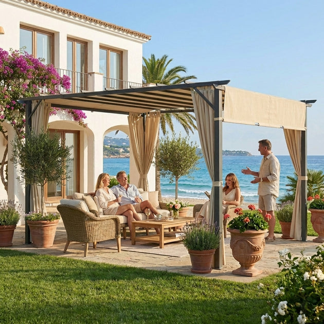 Pergola Cairo Domus 3x4 m Acciaio Verniciato Telo Impermeabile Ecrù